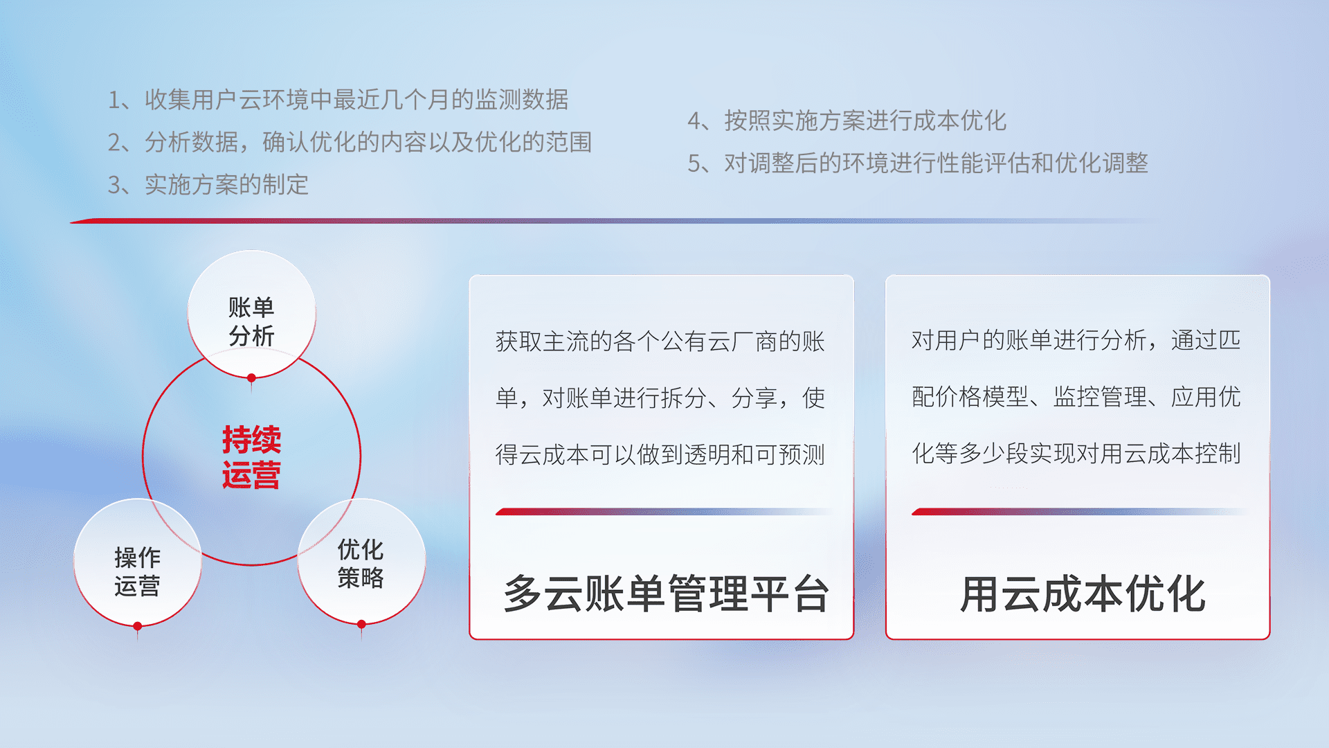 监控业务系统资源开销,,,对资源的消耗精确计量,,,,实现费用的透明化管理,,,不断提升资源使用率,,调整资源购买方式,,降低资源费用成本,,用云成本可预测、、用云费用可优化,,,,云资源配额有据可依。。。